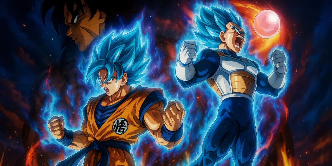 Гоку и Вегета сталкиваются с необычным воином Броли.